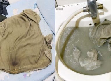細菌的培養皿!他忍痛清洗「20年沒洗過」的小被被 洗手台「濃郁水溝色」噁爆:原來被被是白的
