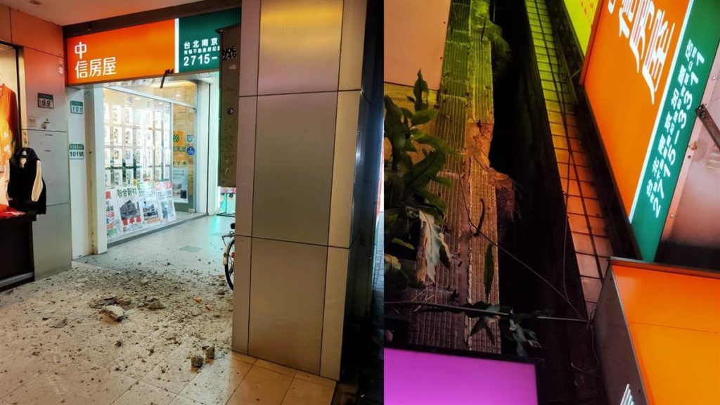 根據中央氣象局最新資訊,10日晚上9時19分發生芮氏規模6.7地震,地震深度76.8公里,震央位於宜蘭縣政府東方27.2公里(位於台灣東部海域),最大震度宜蘭縣、新北市、花蓮縣、台北市、桃園市、新竹縣、南投縣、臺中市、苗栗縣、雲林縣、嘉義縣4級。如今傳出台北市松山區南京東路四段101號大樓出現龜裂情況,現場有磚塊掉落。