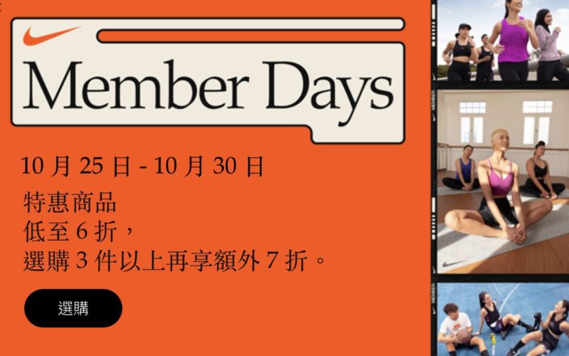 本次的「Member Day 」促銷時間為10 月 25 日到 10 月 30 日晚上 11:59,購買3件或更多列在特賣網頁上的產品,訂單即可享有額外7折優惠,也就是「折上折」。不少品項更已經先祭出優惠價格,舉例百搭款Nike Air Force 1,粉色系女鞋款式從原價4千元下殺到2,399元,若是使用代碼 MEMBER30 即可以 1,679元價位入手,現省下超過2千元。