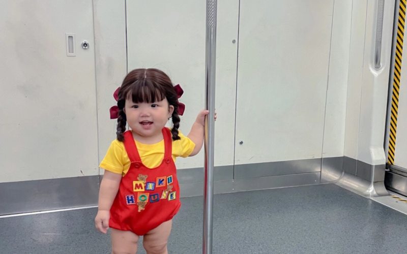 ▼小妹妹站在地鐵車廂中,媽媽在旁邊幫她拍照,她全程都很乖巧配合,真是一個小天使。