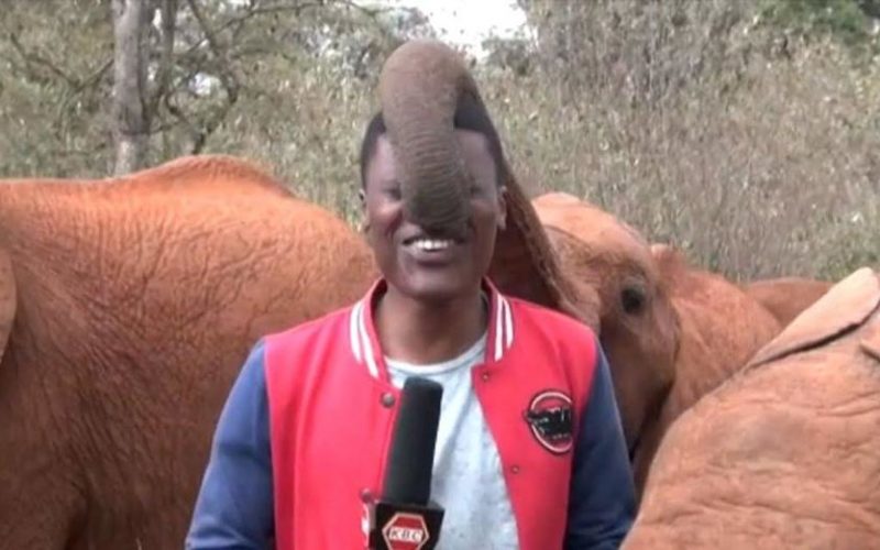 薛德里克野生動物信託基金會正在肯亞進行孤兒大象救援及野生動物復育計畫,肯亞廣播公司一台(KBC 1)記者Alvin Kaunda前去採訪。他報導人類活動對環境的影響時,後方的小象突然搗亂,直接搶走了全場的焦點。
