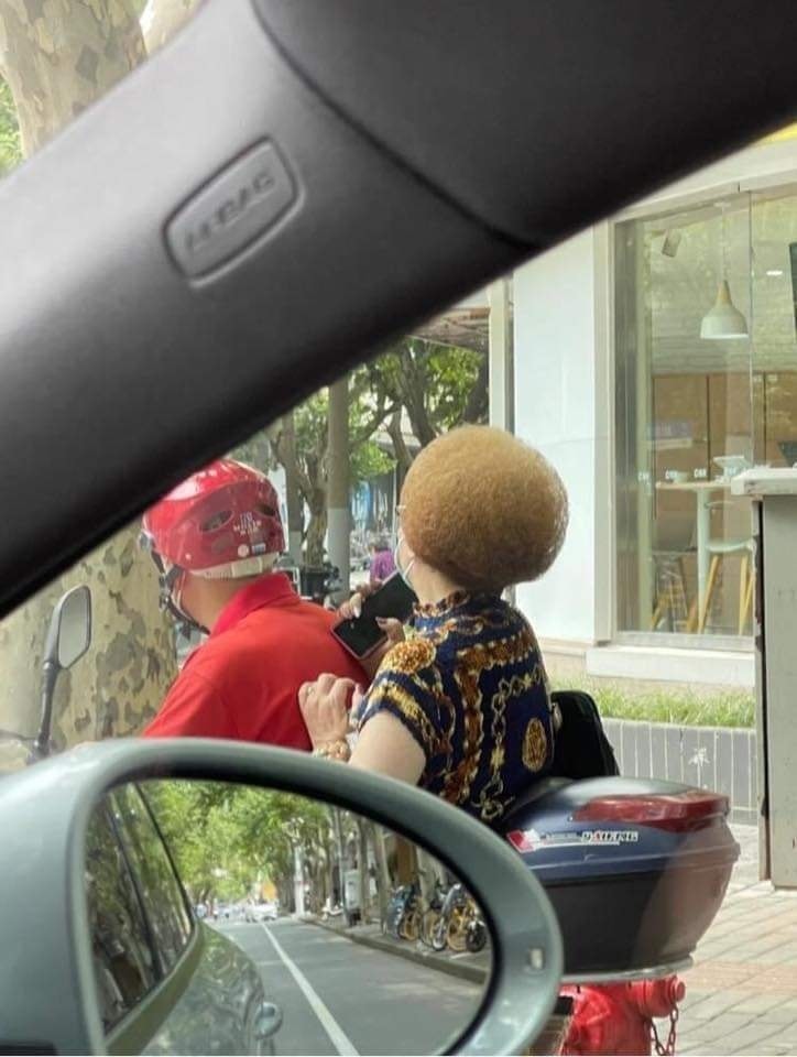 ▼從那名網友貼出的照片可以看到,這位坐在機車後座的阿嬤將頭髮染成棕色,燙得蓬鬆後又剪成圓圓的模樣。有內行的網友表示:「這個頭髮很難吹,如果不是老師父基本上都吹不出來。」想要達成這樣的效果,不只要把頭髮梳成完美的圓型,還要狂噴定型液。不過造型完成後十分堅固,就算狂風吹也不會變形。