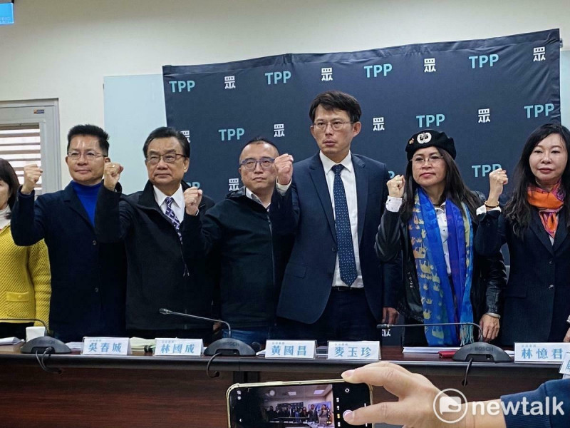 民眾黨團上午召開記者會,黨團8位立委黃國昌、黃珊珊、陳昭姿、吳春城、麥玉珍、林國成、林憶君、張啓楷及黨秘書長周榆修、黨團主任陳智菡都出席。