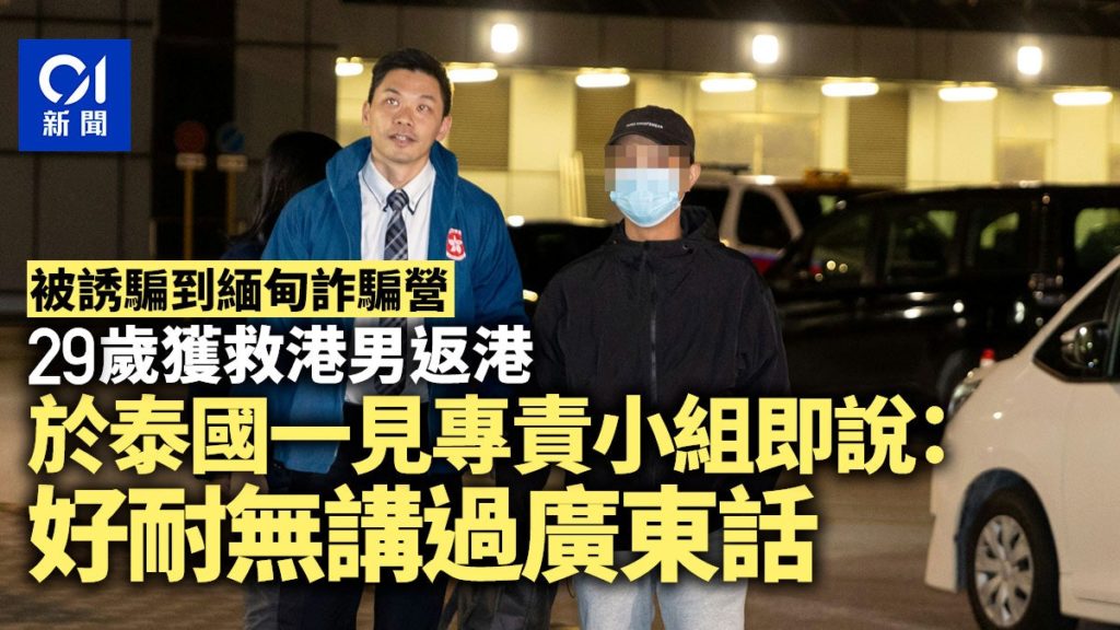 港人被誘騙到緬甸電騙營引起廣泛關注,一名早前獲救的29歲男子,昨日(27日)返抵香港。有份赴泰接該名港人回港的專責小組成員、保安局助理秘書長(緊急事故支援組)袁栢基見傳媒時表示,對可以帶該名港人回港,感到非常感動,而該名港人都十分感謝專責小組。他又透露,該名港人見到專責小組時即說「好耐無講過廣東話」,又稱計劃返港後慶祝一番。