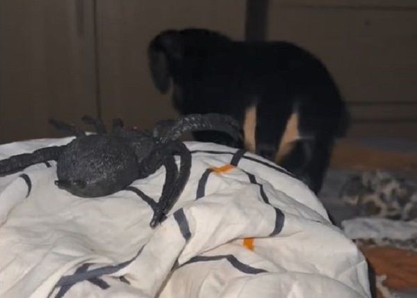 剛開始贊德坐在床上,偷偷將假蜘蛛放在洛羅背後。牠轉身時先是嚇一跳彈開,接著瞬間進入戰鬥模式撲咬玩具,保護主人遠離這隻大怪物,直到把對方被推下床才罷休。之後無論蜘蛛出現在哪裡,這隻汪星人都一定要狠狠教訓對方一頓,就算飼主把玩具放到衣櫃頂端,洛羅都會死死盯著對方不放。目前這段影片在TikTok上已累積超過1200萬次點閱。
